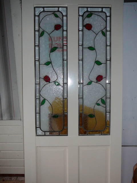 Boven de voordeur zit nog een oorspronkelijk raam. Het is de bedoeling om alle bovenlichten van een dergelijk raam te voorzien.